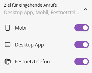 *Geräte - Wählen Sie aus, welches Gerät für ausgehende und eingehende Anrufe verwendet werden soll (Mobil, Desktop-App oder Festnetztelefon).