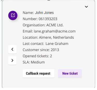 Wenn Sie mehrere CRM- oder ERP-Systeme mit Enreach Contact App for Web verknüpft haben, klicken Sie auf oder , um zwischen den Anwendungen zu wechseln.