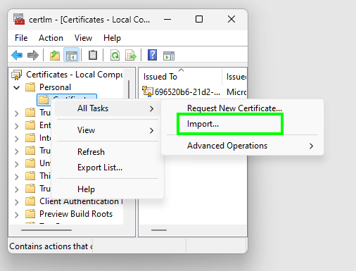 2 Open Certificates - Local Computer | Personal | Certificates.