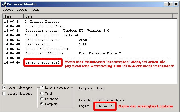 Schicht 1-Meldungen werden mit -l1+ ein- und mit -l1- ausgeschaltet