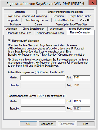Verwenden Sie Swyx Connectivity Setup Tool, um die RemoteConnector Einstellungen festzulegen, siehe 6.3 RemoteConnector konfigurieren