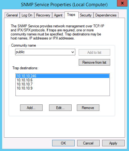 5 You can define the destination for the SNMP traps on the "Traps" tab in the SNMP Service Properties dialog box.