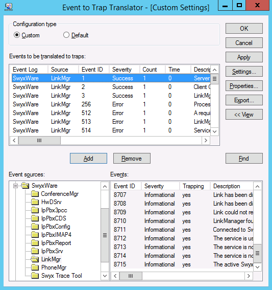 8 You can then use 'evntwin' to select the entries to be generated in the Traps event log. In the example below, in addition to the entries in the event log, traps from SwyxLinkManager are generated every time.