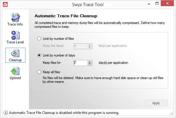 When you click on "Apply", your chosen settings are immediately adopted by the Swyx Trace Tool.