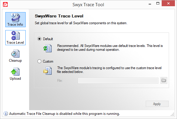 When you click on "Apply", your chosen settings are immediately adopted by the Swyx Trace Tool.