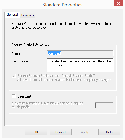 Activate the option "User limit" if only a specified number of users may use this profile. In this case, specify the maximum number of users who are allowed to have this profile.