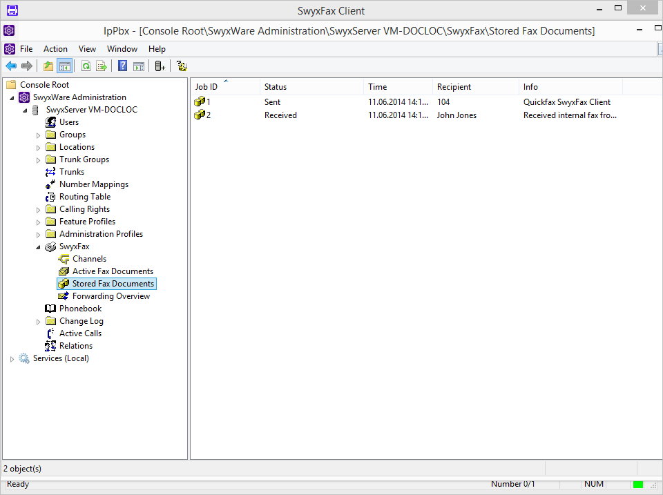 In the SwyxWare Administration under "SwyxFax | Stored Fax Documents", you have an overview of all faxes which