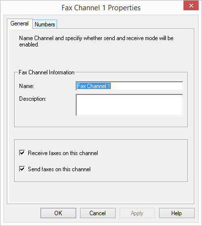 The name of the fax channel can be changed. Make sure that the name is unique. As description, you can insert supplementary comments here.
