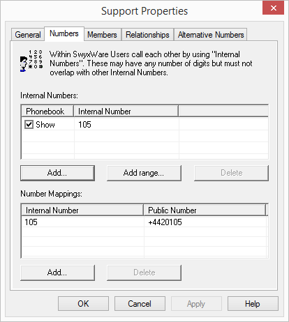 You see a list of the internal numbers for this SwyxWare group.