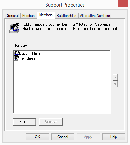 You can specify the order of the group members - relevant for the Hunt Group - here by moving the highlighted group member with the arrows.