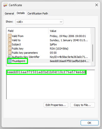 6 Make sure that the copied thumbprint does not contain any trace characters.