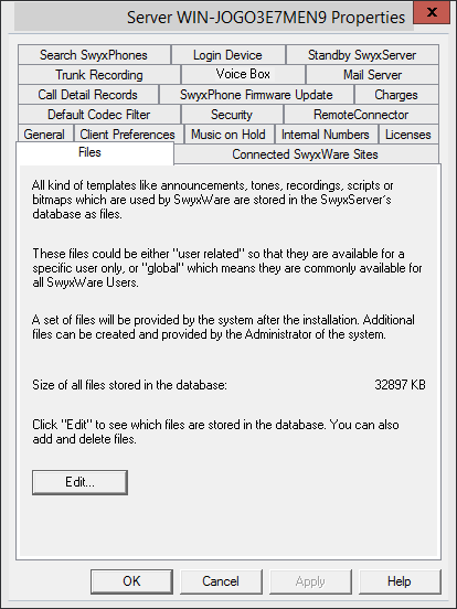 These files are stored in the database during the SwyxWare installation, and may be renewed in an update.