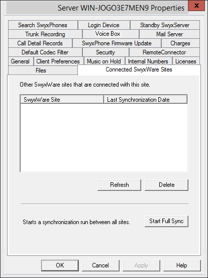 On this tab you can see all the SwyxServers connected to this SwyxServer, and the date of the last synchronization.