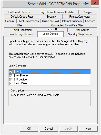 If the status signaling needs to be dependent upon SwyxPhone Lxxx, then activate the 'SIP device' option here.