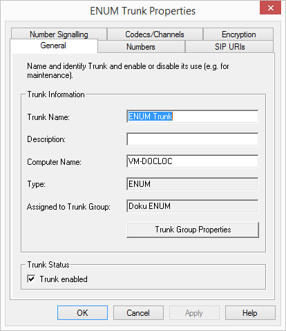Using "Trunk Group Properties..." You will open the Properties of the according Trunk Group. You can edit the Properties of the Trunk Group directly.