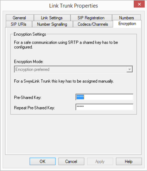 This is how you specify a key for the encryption of a SwyxLink trunk