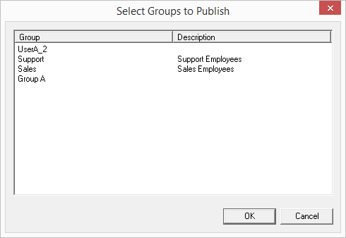 6 Choose one or more groups that should be visible on the site of the linked SwyxServer. The users in these groups will be visible on the linked server in the Global Phonebook, and their status will be displayed there (if the "Presence" field has been activated).