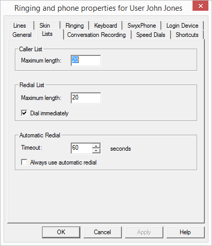 Furthermore, you can set whether or not Automatic Redial is to be used instantly when redialing is activated on the SwyxIt! Classic user interface.