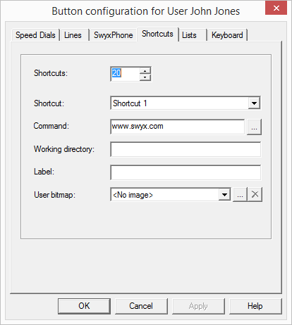 The number of Shortcuts can be defined in this page. You can also assign any command you want and a corresponding working folder to any defined shortcut, much like a Windows default shortcut.