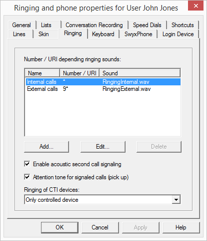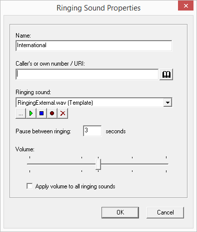 Here you can define ringing sounds which are dependent on the number of the caller or the extension dialled. Wildcards can also be used (* for several numbers, ? for one number).