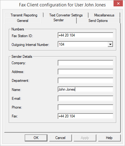 In the "Numbers" field, you can enter the ID of the fax station and the internal number. The Fax Station ID is the number that SwyxFax should transmit to the remote fax machine when a fax is received.