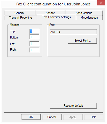 Specify here the margin widths to be applied when text is converted into a faxable format.