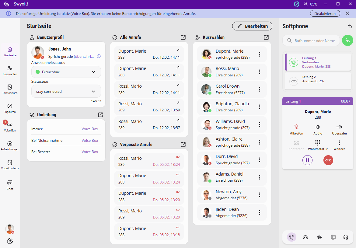 Softphone-Bereich