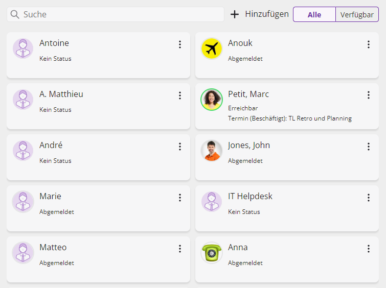 Mit einem Klick auf den Reiter Verfügbar können Sie Kurzwahltasten nach angemeldeten und verfügbaren Kontakten filtern.