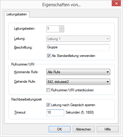 8 Soll diese Leitung nach jedem Gespräch vorübergehend besetzt (gesperrt) sein, so aktivieren Sie die Option Leitung nach Gespräch sperren.