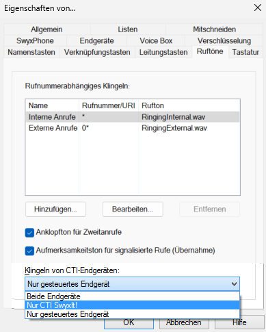 3 Wählen Sie in der Liste Klingeln von CTI Endgeräten den gewünschten Eintrag aus: