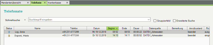 1 Stellen Sie sicher, dass der gewünschte Anruf noch nicht in DATEV Telefonie eingetragen wurde.