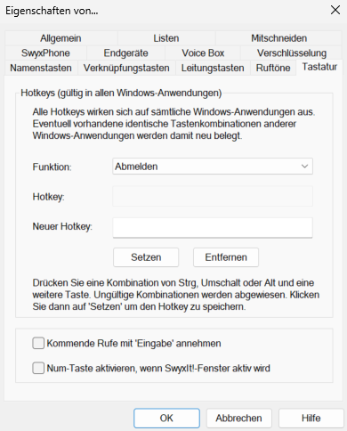 Haben Sie den SwyxIt! Hotkey gelöscht, so ist die ursprüngliche Windows-Hotkey-Funktion wieder verfügbar.