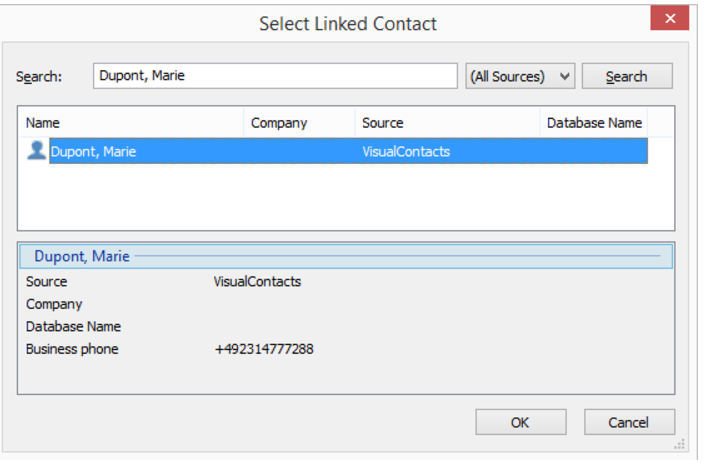 The dialog window Select Linked Contact will open: