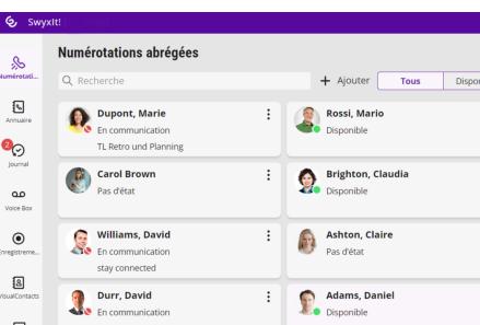 Diverses fonctions SwyxIt!sont disponibles dans l'interface utilisateur.