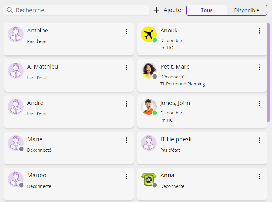 En cliquant sur l'onglet Disponible, vous pouvez filtrer les touches de numérotation rapide en fonction des contacts connectés disponibles.