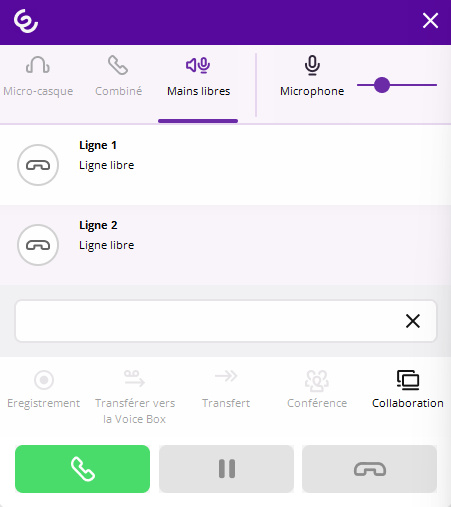 Même en dehors d'un appel actif, il est possible d'accéder à la fenêtre de contrôle d’appel. Un clic sur la barre de titre permet d'accéder aux menus pour contrôler et configurer SwyxIt!.