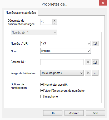 8.17.2 Configuration d'une numérotation abrégée pour l'intrusion d'appel
