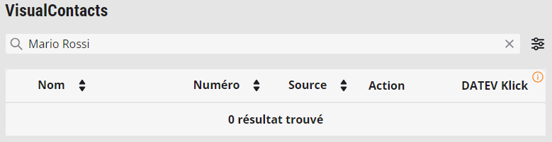 Les résultats de la recherche s'affichent dans la liste de contacts :