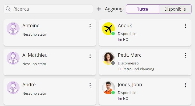 Facendo clic sulla scheda Disponibile, è possibile filtrare i tasti nome per i contatti che sono connessi e disponibili.