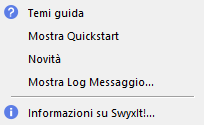 Mostra quickstart | Apre il documento quickstart che contiene la descrizione di funzioni basilari e consente quindi la familiarizzare velocemente con le funzioni di SwyxIt!. |