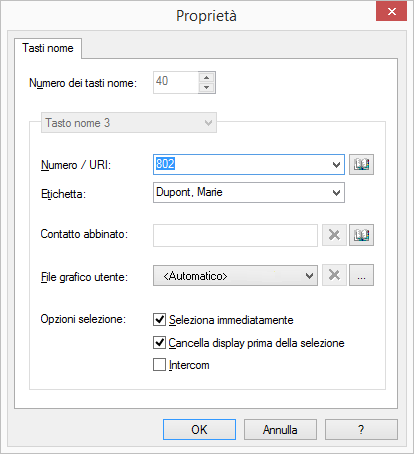 8.17.2 Configurazione di un tasto nome per la funzione intervento