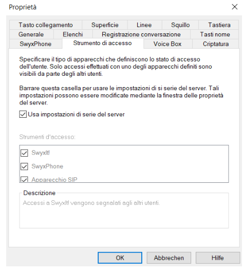 1.4 Segnalazione dello stato. Se un utente è connesso allo SwyxServer con diversi terminali, qui si può definire quale di essi segnalerà lo stato dell'utente.