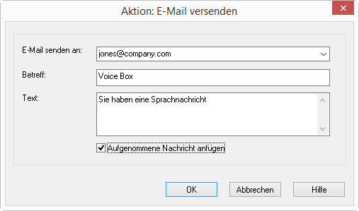 So legen Sie die Parameter für die Aktion zum Versenden einer Sprachnachricht als E-Mail fest