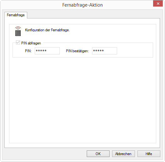 1 Legen Sie fest, ob Sie Ihre normale Standard-Fernabfrage (mit oder ohne PIN-Eingabe) verwenden oder ob Sie für diese Aktion eine spezielle Fernabfrage (z. B. mit einer anderen PIN) definieren möchten.