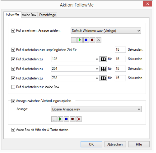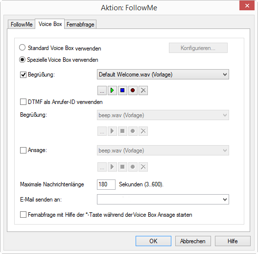 8 Legen Sie fest, ob Sie Ihre normale Standard Voice Box verwenden oder ob Sie für diese Aktion eine spezielle Voice Box (z. B. mit einer anderen Ansage) definieren möchten.
