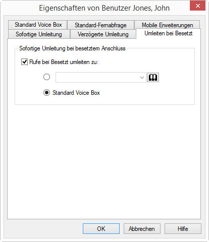 Haben Sie auf Ihre Standard Voice Box umgeleitet, so sind die Einstellungen aktiv, die Sie auf der Registerkarte „Standard Voice Box“ festlegen.