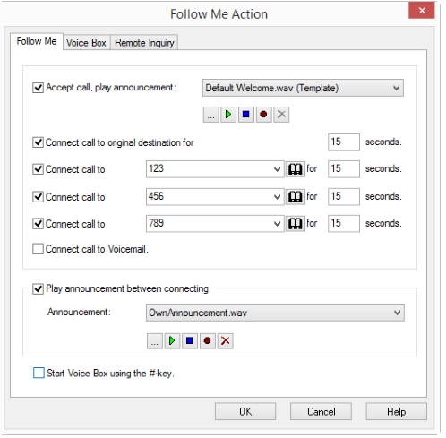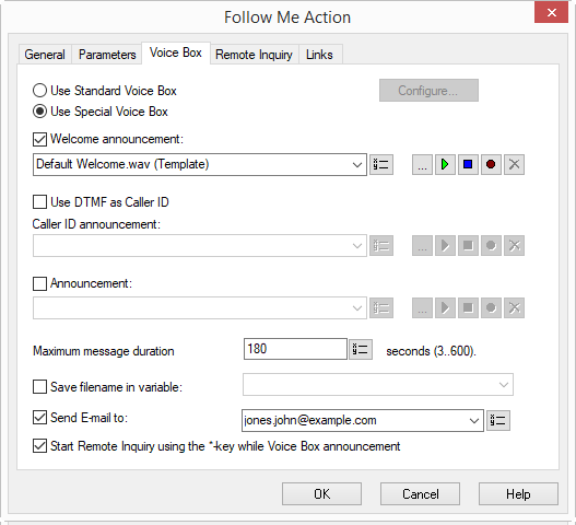 8 Specify whether you want to use your normal Standard Voice Box or whether you want to define a special Voice Box (e.g. with a different announcement) for this action.