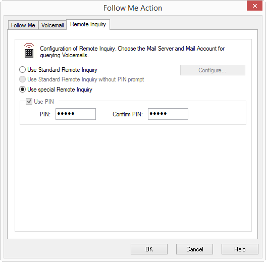 16 Define whether you would like to use your normal Standard Remote Inquiry (with or without PIN) or whether you would like to use a special Remote Inquiry for this action (e.g. with a different PIN):