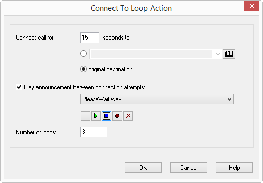 With this action, an attempt will once again be made to connect a call to a certain destination number. The caller hears another announcement between the individual attempts. If the line is busy, the caller will hear a busy announcement defined by the system administrator.