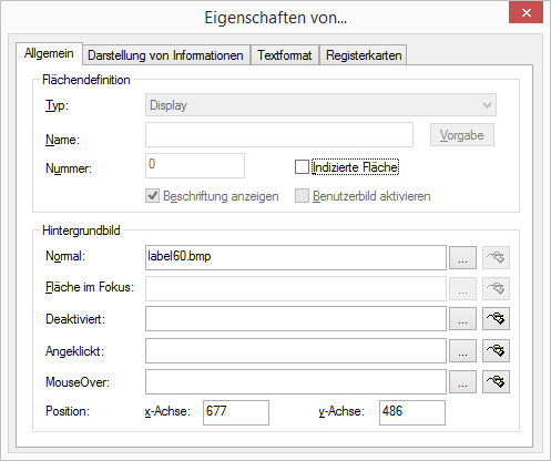 Auf dieser Registerkarte legen Sie fest, welche Informationen auf einem Display-Element angezeigt werden. Folgende Informationen werden zur Anzeige zur Verfügung gestellt: